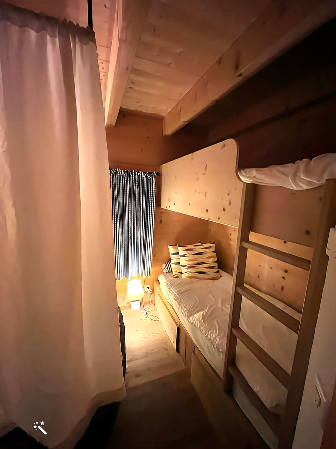 Zwei Schlafzimmer im unteren Stockwerk, ein privates Spa mit Sauna, Bad und Ruhebereich sowie ein weiteres Bad und Waschraum bieten Komfort. Im Spa-Raum befindet sich ein Etagenbett. Die Küche ist gut ausgestattet; zwei Balkone führen zu Garten, Skiraum und Vorratsraum.